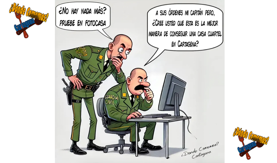 Enrique Costa y Aida Belmonte, del portal '¿Dónde comemos?, Cartagena', ofrecen una nueva viñeta a los lectores, que en esta ocasión centran en la casa-cuartel de la Guardia Civil, un asunto que tiene 'su guasa' y de ahí que entre el cajón de los que aún no ven 'luz en el túnel'.