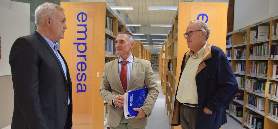 Del Olmo junto a sus directores el pasado viernes en la biblioteca del edificio