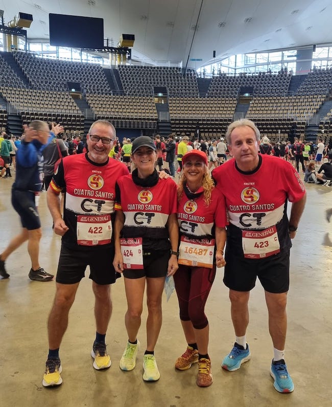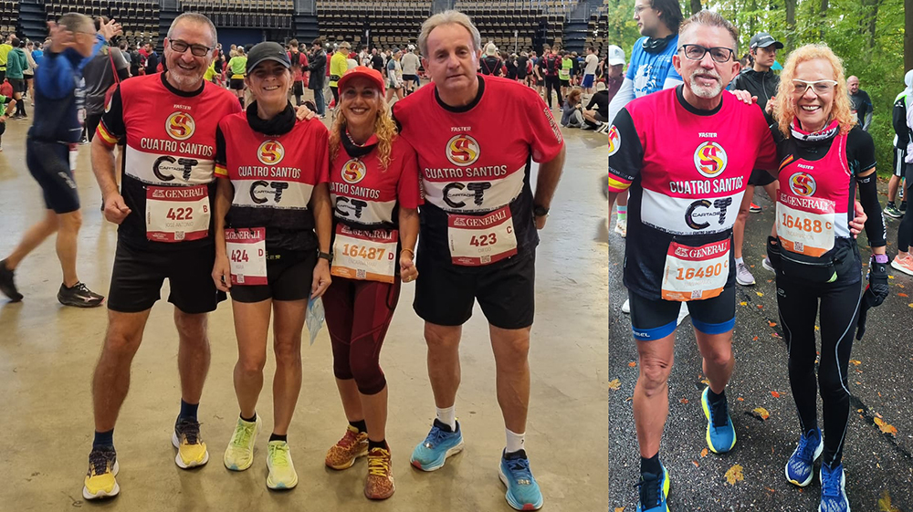 Siete corredores del Club Cuatro Santos de Cartagena participaron en la multitudinaria maratón de Munich, en Alemania. Fueron Eva Rodríguez, Encarna Mari Bermejo, José Antonio Guille, Diego Martínez, Encarnita Ortiz, Juan Manuel Sanabria y Ángel Alberto Cerezo.