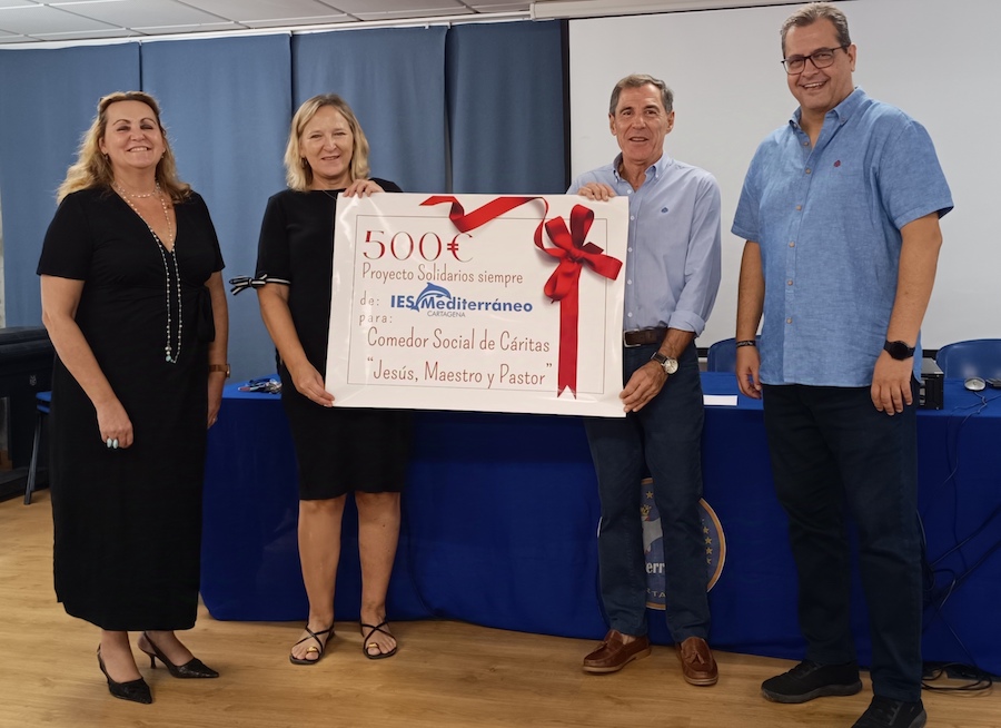 En esta ocasión, la colaboración ha ido a parar al Comedor Social Jesús Maestro y Pastor, de Cáritas Cartagena, ubicado en la calle Juan Fernández, que se encarga de atender a casi un centenar de personas sin recursos al día.Juan Luis Quevedo, responsable del Comedor, acudió al centro educativo para recoger de manos de su directora, Josefa García, el donativo correspondiente al curso 23/24, e invitó a los docentes del centro a celebrar en el comedor alguna comida solidaria, para conocer de primera mano la labor que desempeñan en el mismo. De igual modo, se mostró muy agradecido por el hecho de que también los alumnos hayan colaborado en esa recogida de fondos.