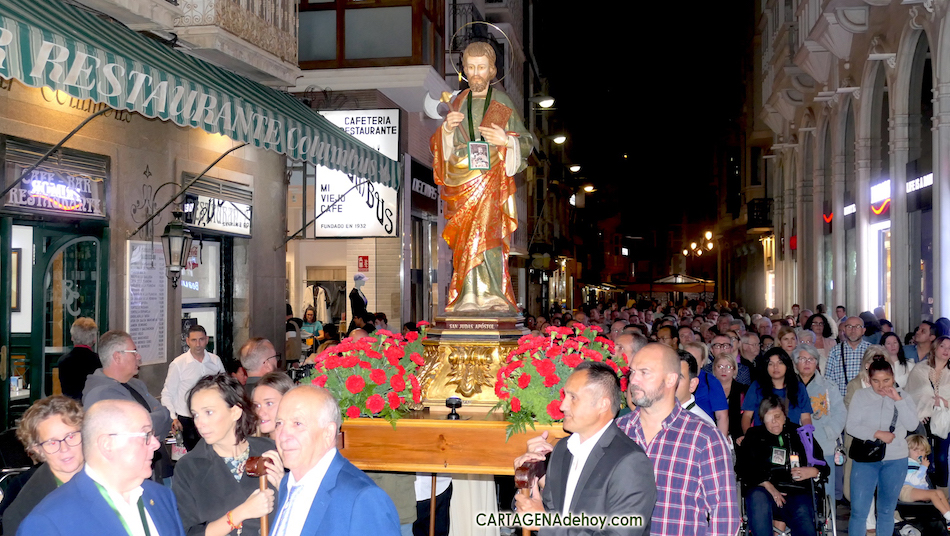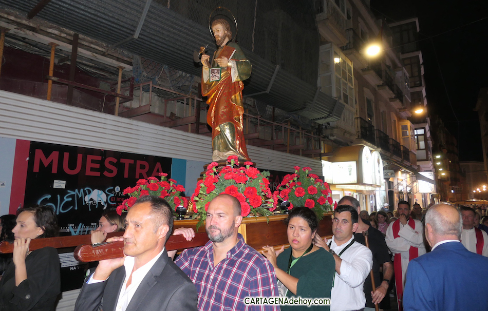 Es un santo cuya devoción va en aumento, como se reflejó en la procesión por Cartagena, con más de trescientos fieles tras la imagen en una procesión que transcurrió por un centro urbano abarrotado de personas y que fue aderezada por oraciones en diferentes paradas. La imagen fue llevada hasta Santo Domingo a hombros por costaleros de ambos sexos.
