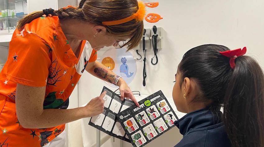 Seis hospitales del grupo sanitario Ribera han puesto en marcha hoy la iniciativa “Healthy monsters”, en el contexto de la popular celebración de Halloween, previa al Día de Todos los Santos, para repartir entre los niños y niñas que acuden a los hospitales y consultas pediátricas, un juego de pegatinas, en el que se identifican algunos problemas de salud con los villanos clásicos de esta noche de disfraces y diversión. El objetivo, enmarcado en el Plan de Humanización del grupo, es amenizar una jornada especial para los más pequeños y sus familias, al tiempo que aprenden a identificar diferentes carencias de nuestro organismo y conocen los hábitos saludables que ayudan a prevenir y paliar estos problemas.