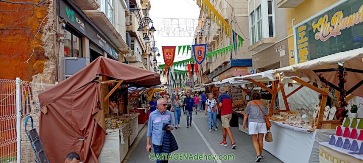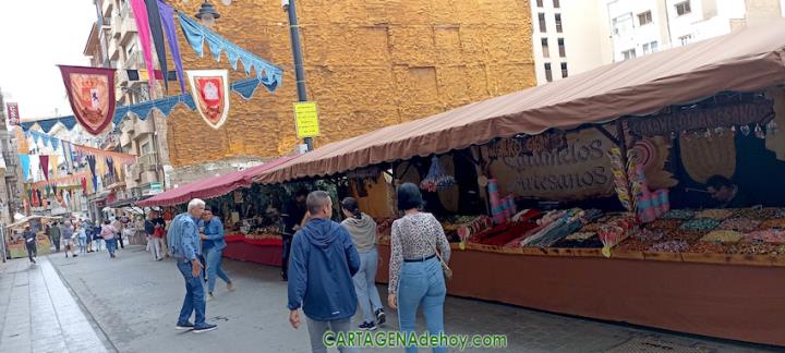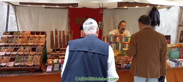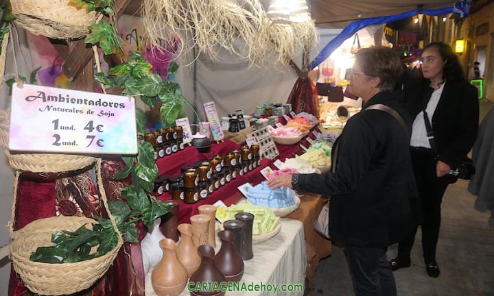 El Mercado Medieval sigue siendo un atractivo cada año en Cartagena pese a que en esta edición la cifra de mercaderes haya bajado a un centenar después de haber alcanzado en las dos anteriores entre 117 y 120.