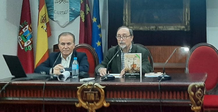 Es el título de la conferencia que ofrece hoy José Cánovas García, coronel de Infantería de Marina, en el salón de actos de la Real Sociedad Económica de Amigos del País, con entrada gratuita. En la foto, la presentación del ibro 'Piratas y corsarios en la costa de Cartagena en los siglos XVI y XVII', obra de Francisco Velasco Hernández, que fue presentado hace unos días dentro de este ciclo cultural.