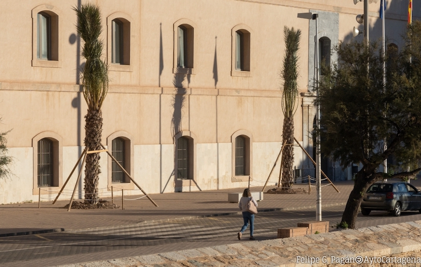 El Ayuntamiento de Cartagena pone cuatro palmeras de gran porte junto a la Muralla del Mar. Esta mejora se ha llevado a cabo sin coste adicional para las arcas municipales gracias al nuevo contrato municipal. De este modo, se mejora el entorno del campus universitario de la UPCT. Cerca del campus se llevará a cabo también la plantación de 11 árboles tarays en la Muralla del Mar.