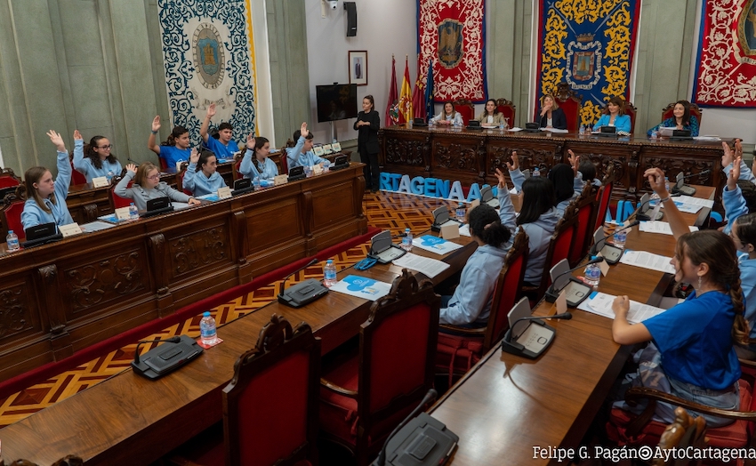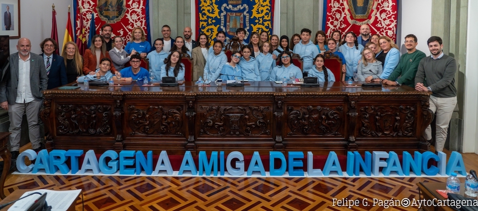 El Consejo Municipal de Infancia y Adolescencia de Cartagena es un órgano de participación infantil y adolescente, con niños, niñas y adolescentes con edades comprendidas entre los nueve y los diecisiete años, incluido en el Programa de Ciudades Amigas de la Infancia de UNICEF, del que el Ayuntamiento de Cartagena forma parte. Un año más el pleno ha servido para que una veintena de jóvenes de entre 12 y 17 años expongan sus propuestas en el Ayuntamiento. Estas peticiones se expondrán en un mural elaborado por los propios chavales en el que mostrarán su visión sobre los derechos de la infancia relacionados con la protección y prevención de violencia.