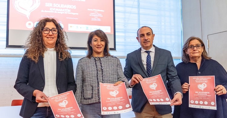 La presentación de esta maratón ha contado con la edil de Política Social, Cristina Mora, que ha hecho un llamamiento a la solidaridad de los cartageneros. El lema de este año es "Ven a donar sangre. Comparte la vida". Desde el Centro Regional de Hemodonación destacan que hacen falta cada día 200 donaciones de sangre para hacer frente a la demanda de los hospitales de la Región, que llevan a cabo cirugías y atienden a enfermos oncológicos y hematológicos que la necesitan.