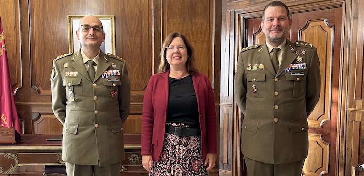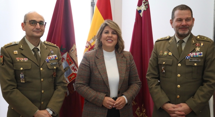 Con motivo del relevo de mando de los jefes del Regimiento de Artillería Antiaérea 73, la presidenta de la Asamblea Regional de Murcia, Visitación Martínez, ha recibido esta mañana al coronel saliente, Carlos Quijano Barroso, y al coronel entrante, José Ángel Úbeda Garcerán.