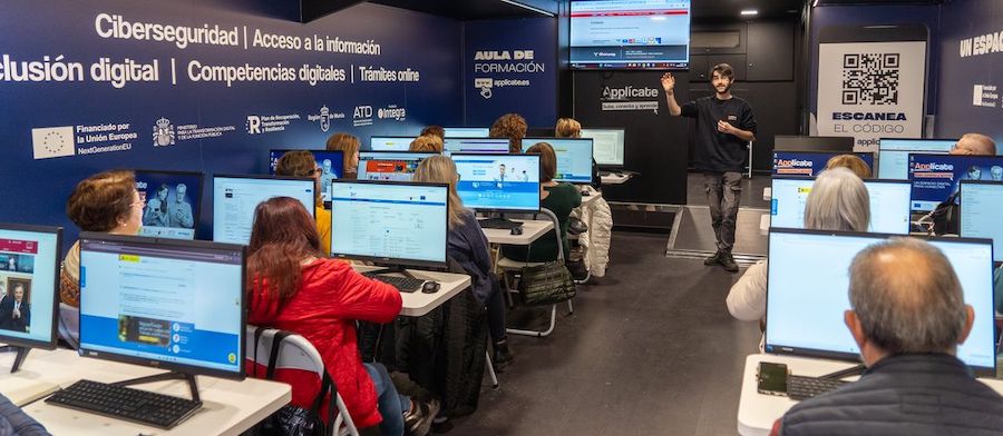La campaña itinerante 'Sube, conecta y aprende' ha regresado a Cartagena con una nueva escala. Ahora está en Ciudad Jardín y después se ubicará junto al estadio Cartagonova (10 al 14 de febrero) y Santa Ana (17 a 21). Las clases para aprender a desenvolverse en las cibergestiones son gratuitas.