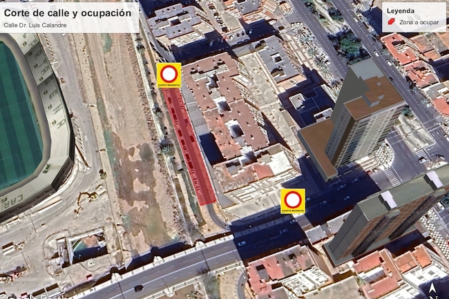 Un tramo de la calle Dr. Luis Calandre junto al estadio Cartagonova estará alrededor de dos meses cortado al tráfico. El corte comienza este lunes, 17 de febrero, a primera hora de la mañana. Sí que estará permitido el acceso y salida de vehículos de los garajes particulares ubicados en este tramo que abarca la longitud de una manzana.