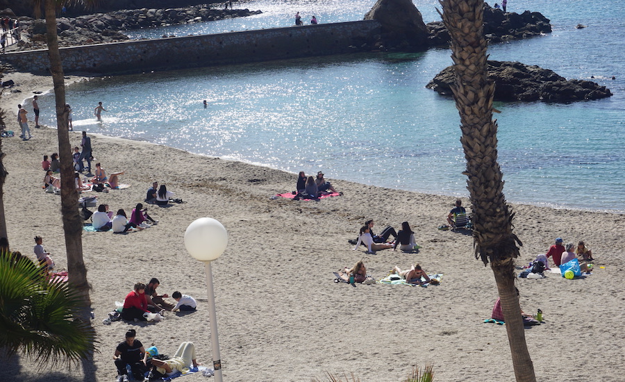 El buen tiempo se va abriendo paso en este invierno y en días soleados como el de ayer muchos optaron por acercarse a las playas de Cartagena y algunos, como se observa en las imágenes captadas en La Cortina, incluso a darse un chapuzón pese a que el agua todavía está fresca.