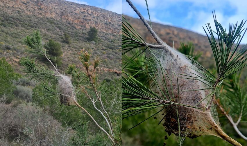 Febrero y marzo es la época de mayor alerta ante la especie de lepidóptero defoliador también conocida como 'procesionaria del pino, pues es cuando abandona su nido provocando daños en los arboles, por lo que en estas fechas ya está activa y hay que tener precaución, pues también daña a personas y mascotas.
