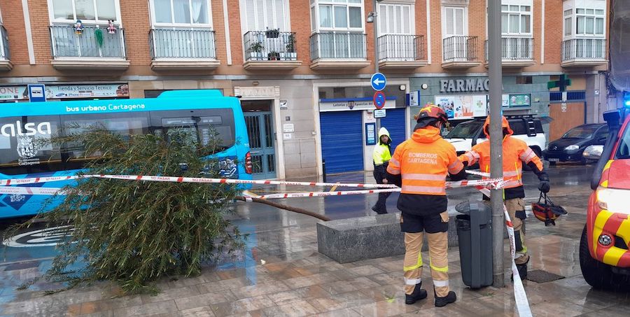 Los Bomberos realizaron 17 intervenciones, destacando cinco por desprendimientos y caídas de objetos, Además, se llevaron a cabo asistencias a conductores en el Camino del Sifón y la Calle General La Loma Alta. Se efectuó el saneamiento de señales de tráfico en Los Dolores, la asistencia a un animal en la Travesía Gabriela Mistral y se atendió un incendio en un local público en la Avenida América.