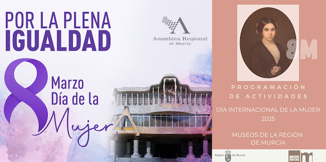 La Asamblea Regional, en la semana del 'Día internacional de la mujer' (8 de marzo), ha organizado, un año más, su campaña 'Por la plena igualdad', mientras que los museos de gestión autonómica, como el MVRAM, incluyen en la celebración con conferencias, visitas comentadas y un taller infantil del 4 al 12 de este mes.