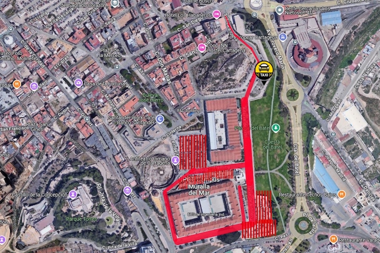 La calle principal afectada es Adarve de la Artillería, así como todos los aparcamientos disuasorios, incluidos los de la plaza de toros del campus de la Muralla del Mar debido a la fiesta de las paellas universitarias.