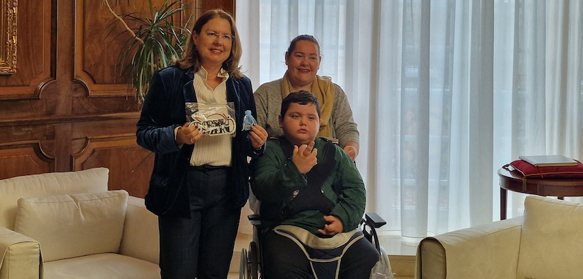 La presidenta de la Asamblea Regional, Visitación Martínez, ha recibido en Cartagena al pequeño Julián Cayetano Costa Clemente. Un niño de ocho años, paciente oncológico, que, tras superar un tumor cerebral, continúa en tratamiento por los graves efectos producidos por esta enfermedad.