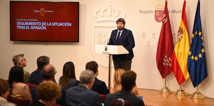 López Miras destaca la respuesta "coordinada" del Gobierno regional ante el apagón y lamenta la "falta de información" del Ejecutivo central