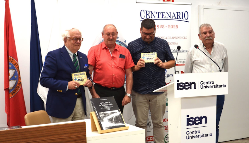 El salón de actos de ISEN, con muy buena asistencia de público, acogió la cuarta conferencia del ciclo organizado con motivo del centenario de la fundación de la Escuela Técnica de Aprendices de Bazán en Cartagena, centrándose en esta ocasión en la etapa de fabricación entre 1909 y 1938, que permitió conocer que nuestra ciudad fue designada en 1915 para crear 28 sumergibles, siendo el primero botado en 1921, además de que 35 de los 37 construidos en un siglo en España han salido del astillero.