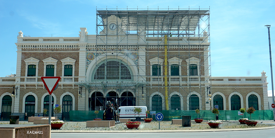 El histórico edificio modernista (diseñado por Víctor Beltrí e inaugurado en 1907) que acoge la salida y llegada de ferrocarriles está inmerso en un proyecto de remodelación total de larga duración, que en esta primera fase está generado escenas como las que muestran las fotografías.