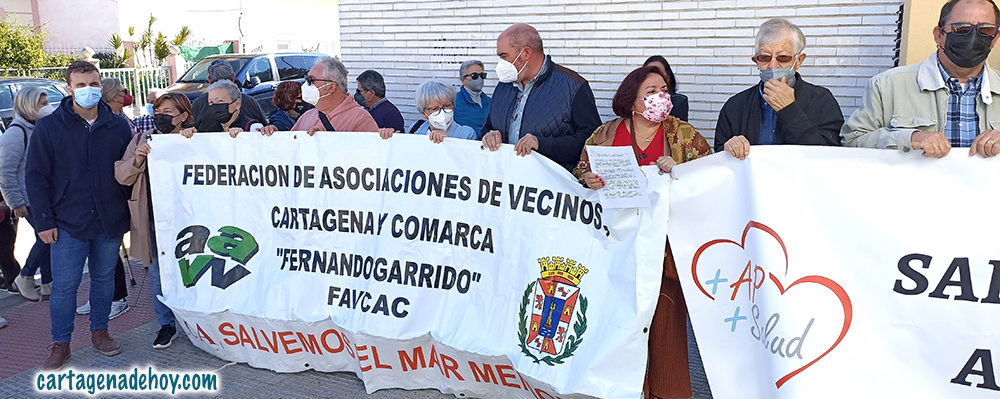 Ha cerrado Sonia Montoya, presidenta de la Federación de Asociaciones de Vecinos de Cartagena y Comarca, quien ha comenzado recordando que son 98 las asociaciones y colectivos que firman el manifiesto en defensa de la atención primaria “ante la crítica situación de centros de salud y consultorios, exigimos al gobierno regional con urgencia una mayor accesibilidad reduciendo listas de esperas y facilitando consultas presenciales, además de reapertura de todas las instalaciones sanitarias y mejorar la atención a los mayores en las residencias y en sus domicilios”, a lo que suma más enfermeras, médicos, trabajadores de las áreas de admisión y trabajadores sociales. “Para todo esto es imprescindible un aumento del presupuesto, que debe alcanzar el 25% del total en sanidad”.