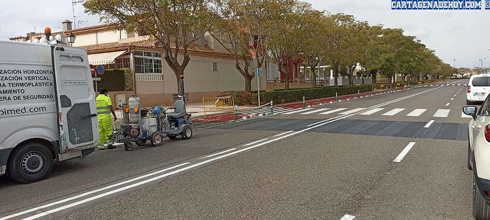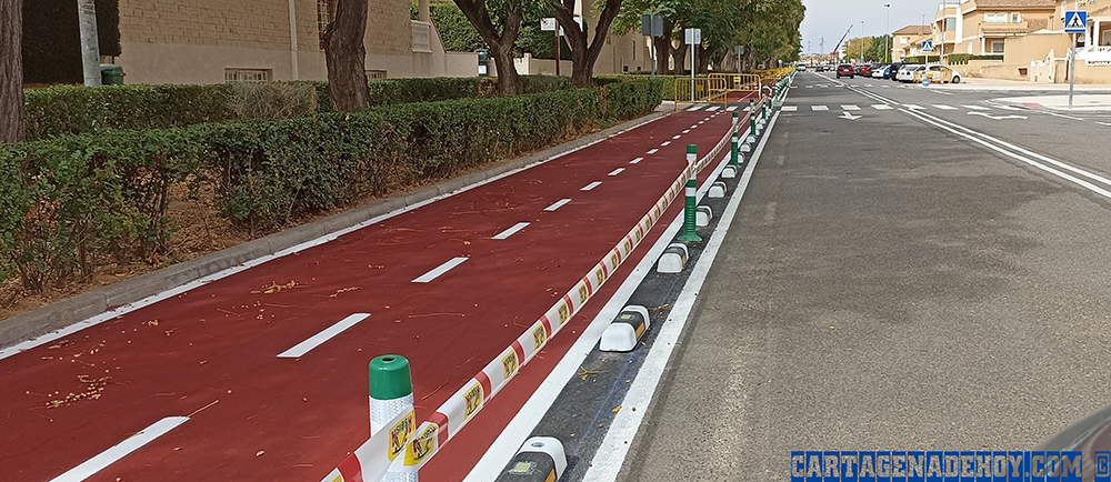 Los trabajados del nuevo carril-bici de esta arteria del Polígono Santa Ana están en la fase de pintado, con lo que están en su fase final para estrenarlo junto a la redonda del final de esta vía (en el lugar donde antes estaba 'el muro'), que conectará para el paso de vehículos a la barriada con Los Dolores y San Cristóbal.