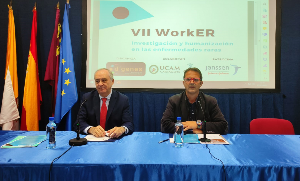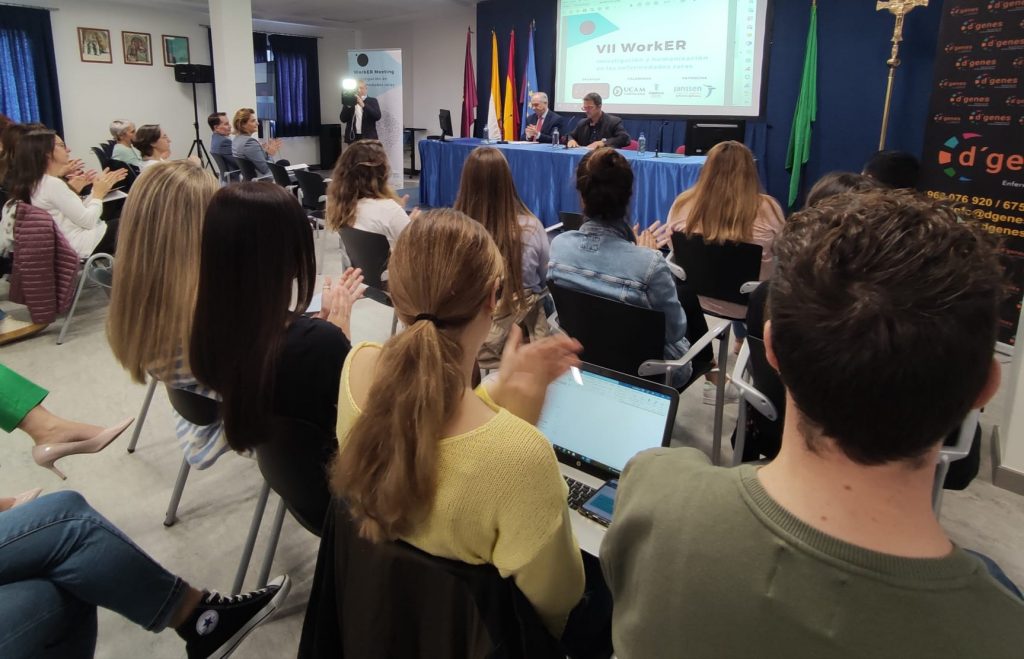 Este VII WorkER, en cuya inauguración han participado el presidente de D´Genes, Juan Carrión Tudela, y el director general de Planificación, Investigación, Farmacia y Atención al Ciudadano, Jesús Cañavate Gea, ha congregado a más de medio centenar de personas, entre profesionales y estudiantes de ramas sanitarias y afectados o familiares de personas con enfermedades raras, que han seguido las diferentes intervenciones.
