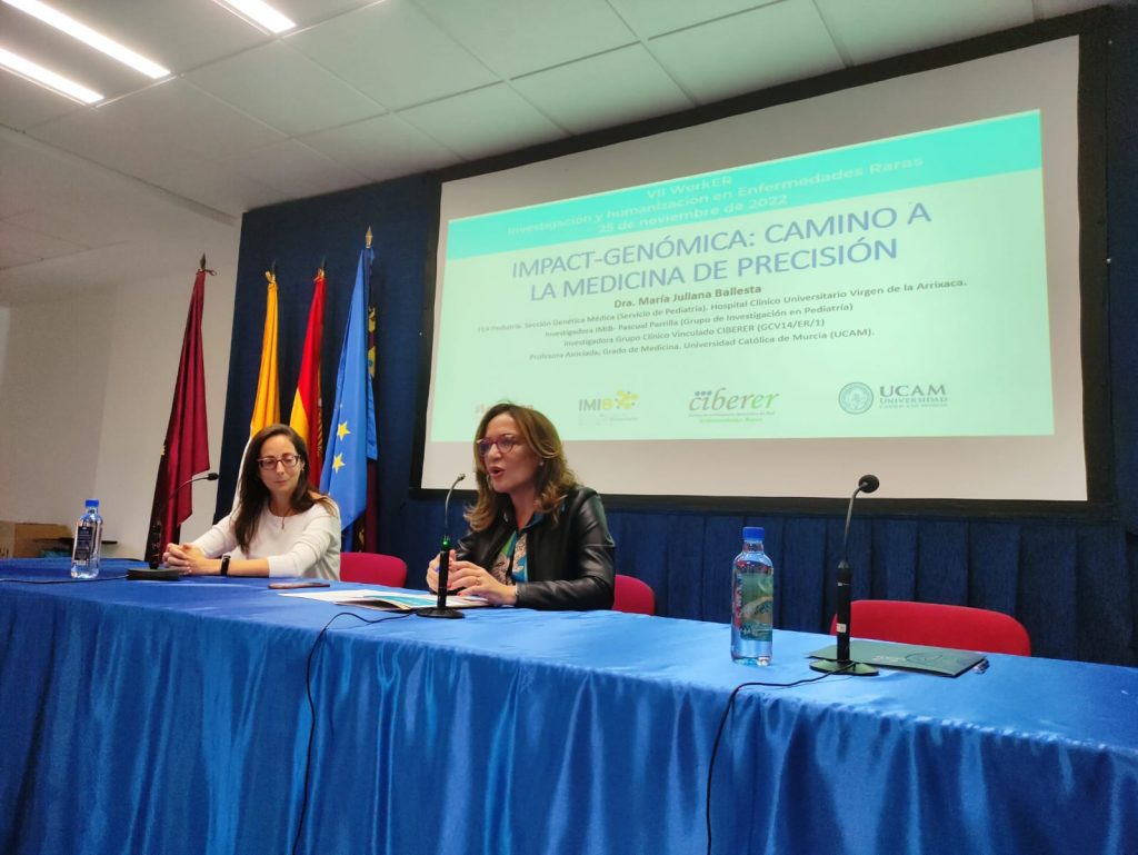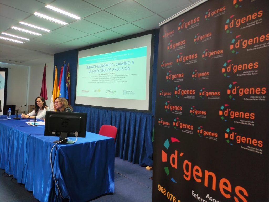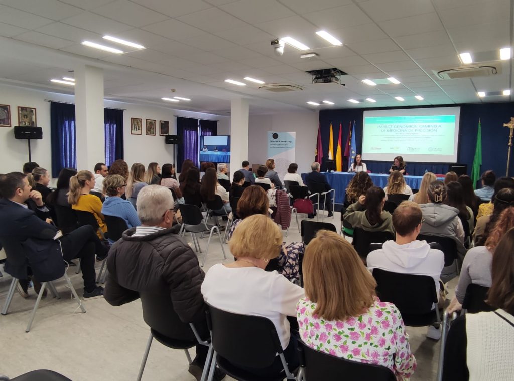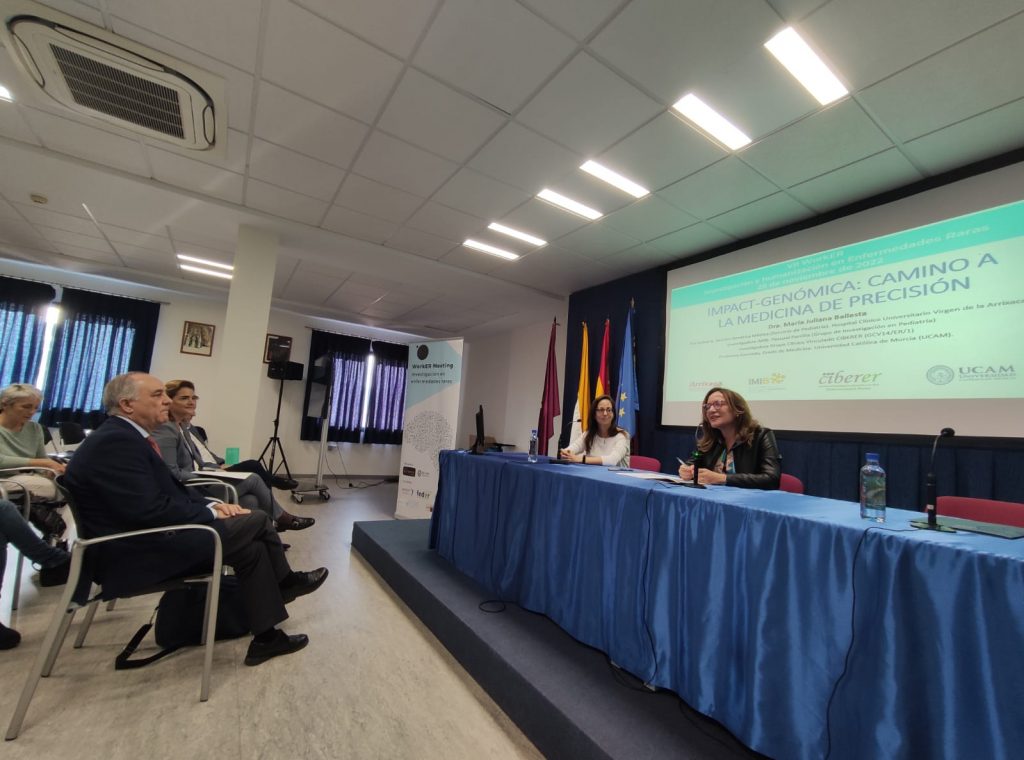 Durante la jornada, María Juliana Ballesta, del Instituto Murciano de Investigación Biosanitaria y profesora asociada de la UCAM, ha informado de los avances del proyecto IMPACT-GENÓMICA, que promueve una infraestructura cooperativa para realizar estudios genéticos de alta complejidad basados en tecnologías de investigación que aceleren la transferencia en I+D+i de forma equitativa y mejoren la eficiencia en la utilización de los recursos del Sistema Nacional de Salud.