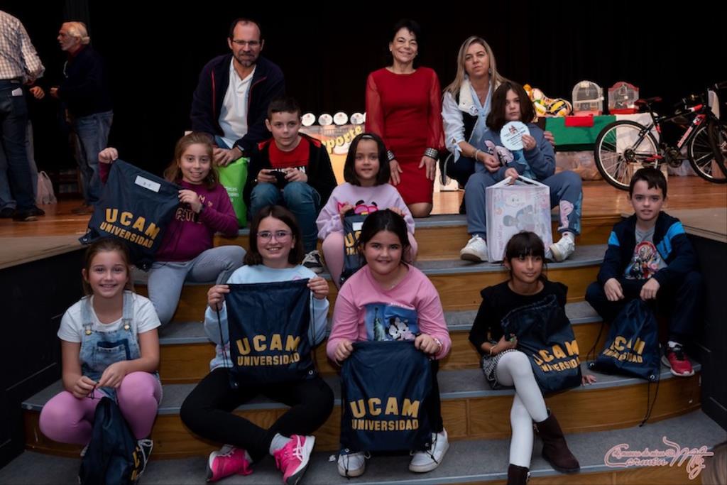 El epílogo fue el sorteo de regalos, entre los que figuraban balones, pájaros con jaula, un lomo, camisetas y, entre otros, una bicicleta donada por Cofise y un balón firmado por los futbolistas del FC Cartagena de la segunda división del fútbol profesional.