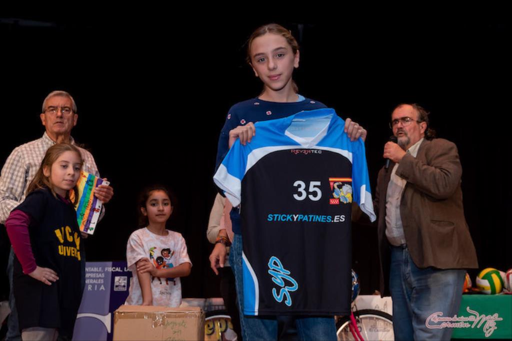 Alumna de Salesianos y de 12 años de edad, conquista la décimo sexta edición con un dibujo sobre Navidad y deporte con el epicentro de un balón de voleibol, deporte que practica y que, debido a que tenía un partido, le impidió recoger la bicicleta destinada al dibujo ganador de un concurso que volvió a reunir a más de doscientos participantes (abarcaban 20 centros docentes) en una mañana aderezada por una chocolatada, juegos tradicionales, exhibición de bailes flamencos y una multitud de regalos y premios.