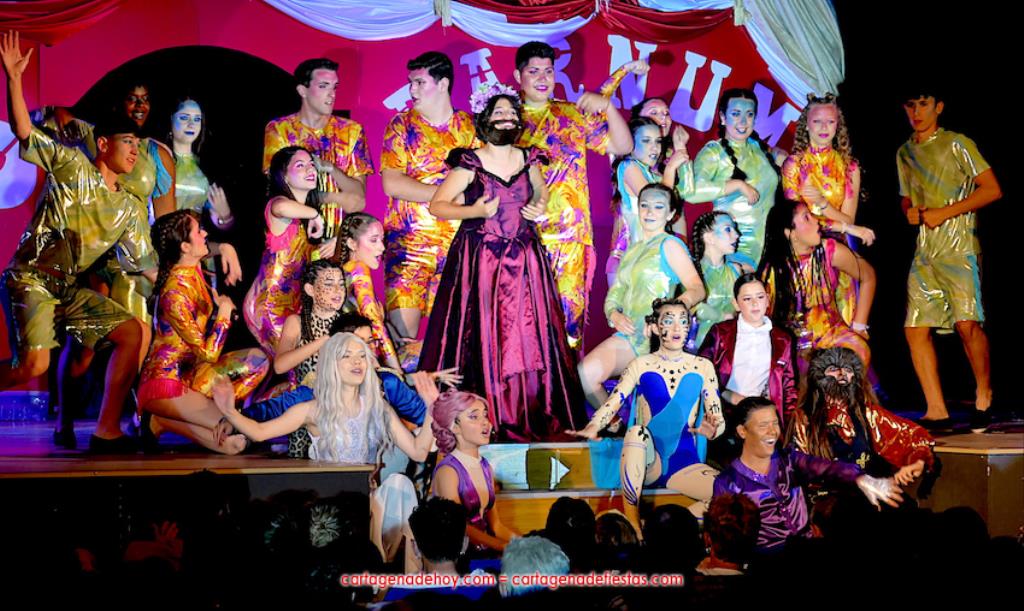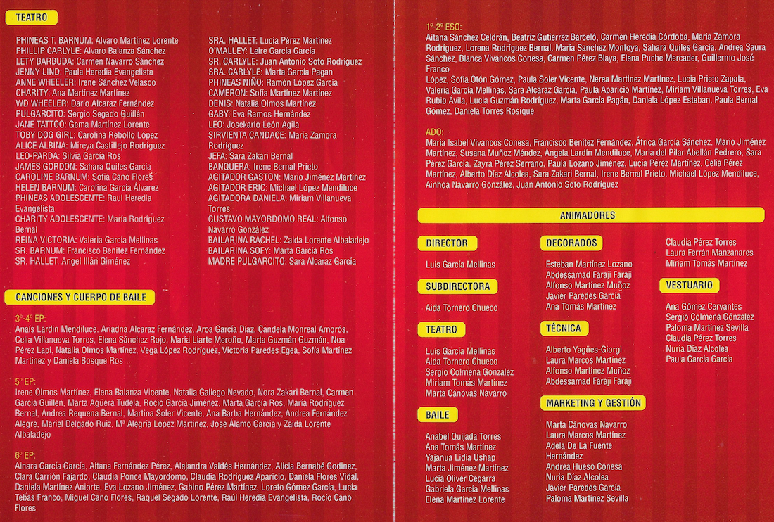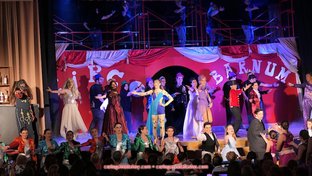 Este año la obra elegida por el centro juvenil es 'Un millón de sueños', inspirada en 'El gran showman' con diálogos en directo y canciones pregrabadas, siendo muy ágil el desarrollo (nada de diálogos o bailes de larga duración, lo que suaviza sus tres horas de representación, con intermedio incluido) ofrecido por los actores principales, secundarios, bailarines y figurantes, con momentos en los que el escenario se trasladaba a los pasillos para potenciar la complicidad con un público entregado, que anima continuamente con sus aplausos y perdona cualquier pequeño error, como es preceptivo cuando se trata de tan jóvenes intérpretes. Pero, vamos, errores fueron los mínimos y lo decimos con sinceridad.