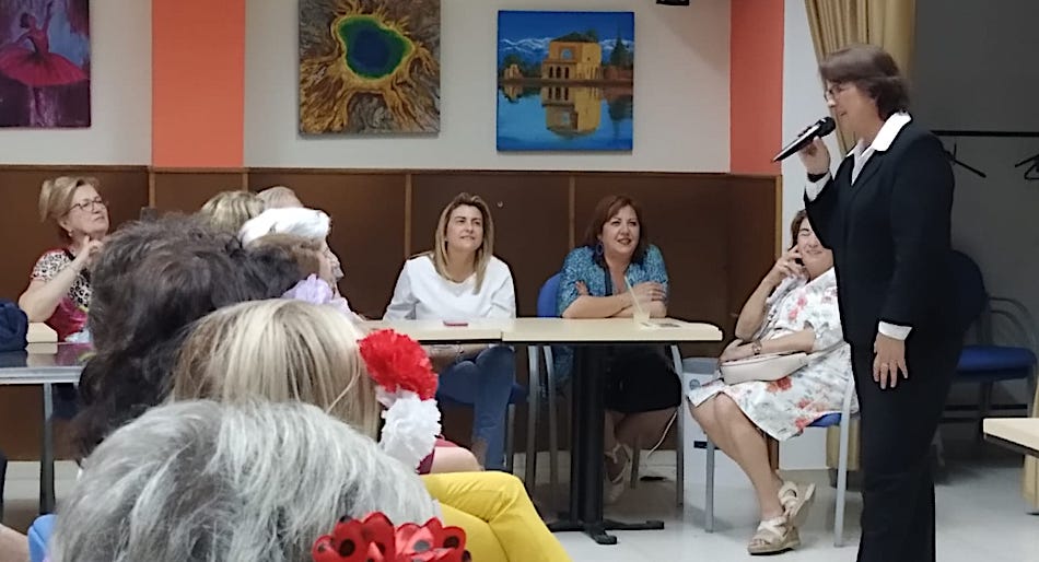 La bendición de la cruz de mayo en la entrada del local social, una exposición de pintura de los alumnos de Javier Lorente, la presentación del libro 'La otra cara de la catedral antigua', obra de Magdalena Blesa, quien a continuación ofreció un recital de poesía, abrieron ayer los actos de las jornadas culturales que organiza la asociación de vecinos, que se prolongarán hasta el fin de semana y que estas tarde ofrece un taller de risoterapia (18 horas) y Dueto Literario con la presentación de 'De la zarzuela a la copla' (suspendido por COVD-19).