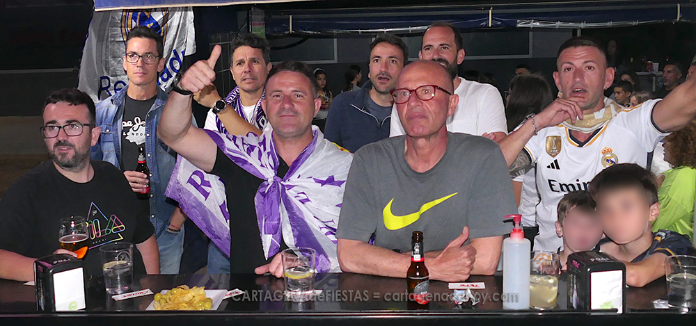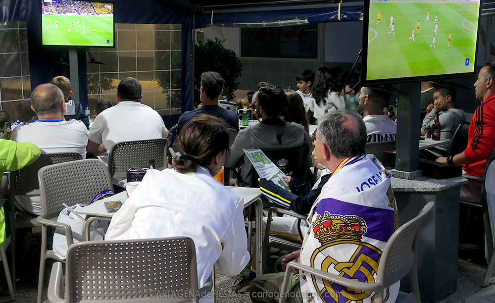 La final de la ‘Champions League’ fue vivida intensamente por la amplia afición del Real Madrid de Cartagena de diferentes formas, destacando hacerlo junto a otros simpatizantes en los bares.
