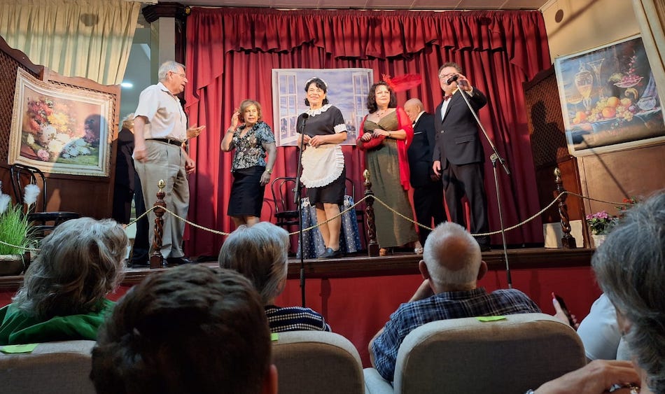 El emblemático y más que centenario inmueble dolorense lleva un intenso fin de mes en el que se han sucedido el teatro leído, una representación teatral (foto adjunta) y una exhibición de bailes de salón, a lo que se suma hoy, a las 19.30 horas, el cierre de curso musical (entrada gratuita) y el próximo sábado un baile con la música del dúo ‘Nerea’ (18 horas) y rifa familiar.