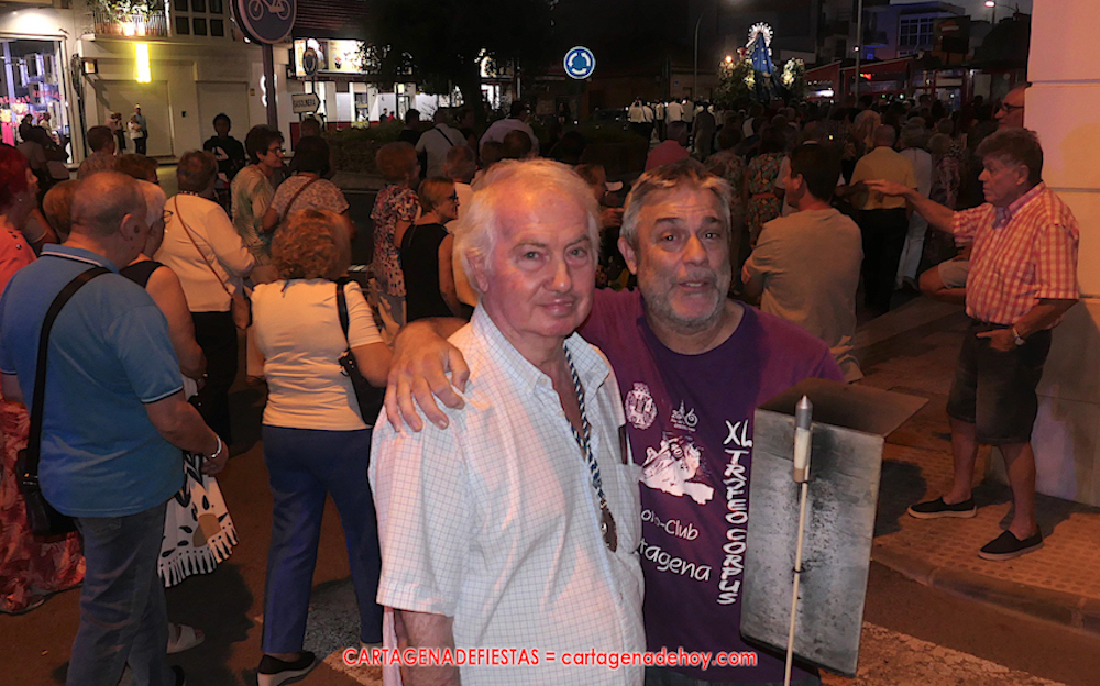 Cuando la Virgen de los Dolores pasa por el domicilio de la familia Teruel, una traca resuena desde hace décadas, en una tradición que inició Ángel Teruel Soto, que continúa su hijo Francisco y en la que ya se ha involucrado su nieto Ángel para prolongarla en el tiempo. En la foto se observa a estos dos últimos.