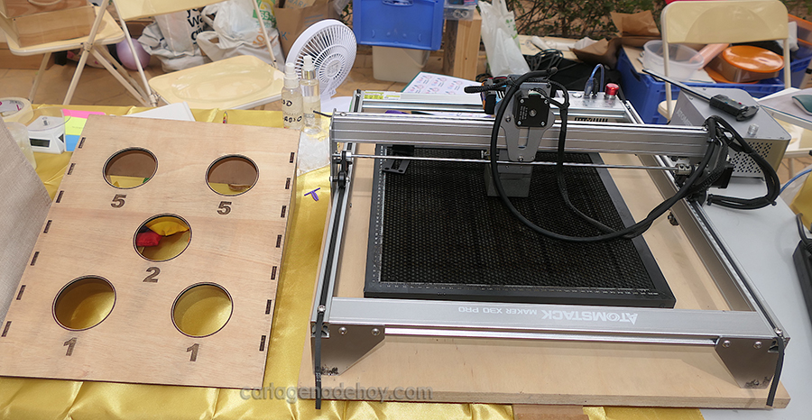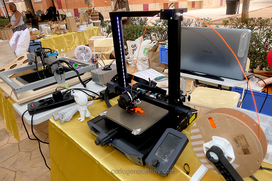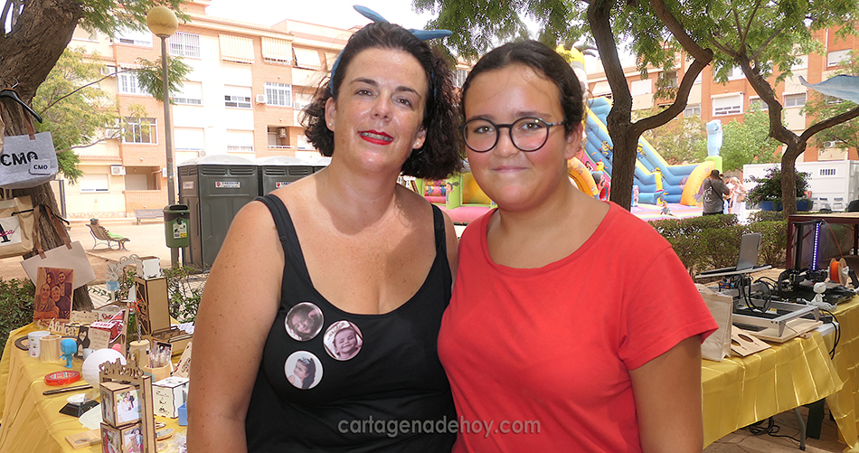 El mercadillo de artesanía que se celebró en el Polígono Santa Ana permitió descubrir la novedosa presencia de un puesto que elabora objetos en impresora 3D y de grabado con Láser CNC, el cual está a nombre de las hermanas Caridad y África Sánchez Moya, vecinas de Los Dolores.