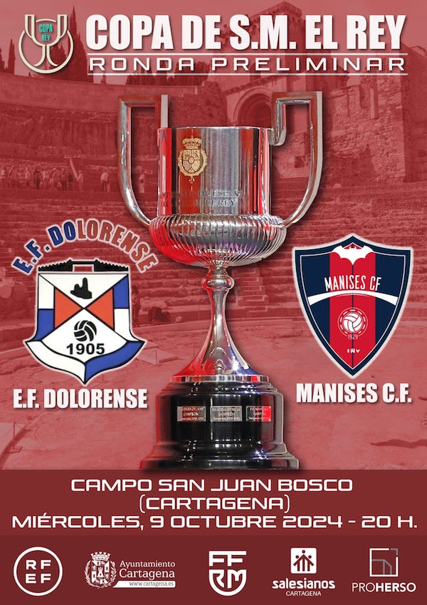 En el plano deportivo, Tano Moltó viajó a Manises hace unos días para observa al rival de este miércoles, comprobando que se trata de un conjunto con una media de altura superior a las de los dolorenses, además de la edad, pues cabe recordar que el CD Dolorense de segunda autonómica de esta temporada es la prolongación del sub-23 de la anterior. Aunque para muchos ya es un éxito disputar esta eliminatoria, los jugadores y técnicos anuncian que tratarán de seguir haciendo historia para Los Dolores, 'la cuna del fútbol cartagenero', pues el primer partido de 'foot-ball' disputado en el municipio con trofeo en juego data de 1905.