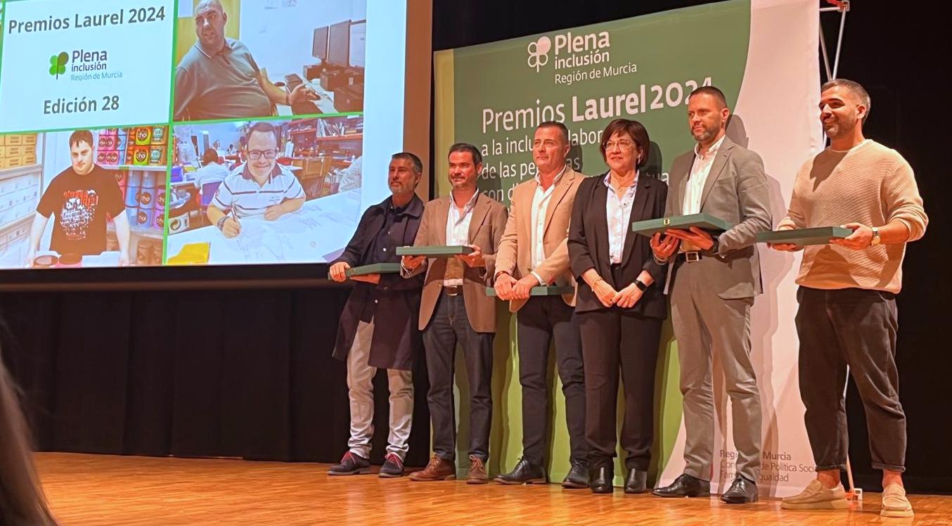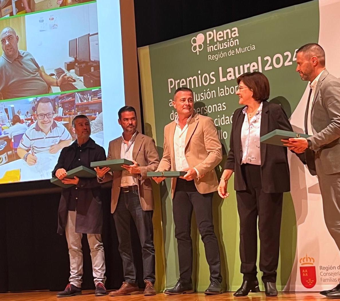 'Plena inclusión Región de Murcia' es una federación de 27 asociaciones sin ánimo de lucro impulsadas por familias y destinadas a mejorar la calidad de vida de las personas con discapacidad intelectual o del desarrollo. Cada año, desde 1995 y con el paréntesis de la pandemia, entrega los 'Premios Laurel' para distinguir y agradecer a entidades que llevan a cabo iniciativas para favorecer la inclusión laboral y social de las personas de un colectivo cuya tasa de paro triplica la de la población general, ya sea contratando a estos trabajadores directamente o adquiriendo productos o servicios de los centros especiales de empleo, además de otras vías de colaboración que permiten que esta labor siga adelante y ampliándose. Una de estas empresas es Artes Gráficas Cervantes, que este año cumple 22 años de andadura, distribuidos en los primeros años en el polígono industrial Cabezo Beaza y desde hace varios lustros en el kilómetro 437 de la antigua N301, carretera Madrid-Cartagena, frente a la estación de servicio.