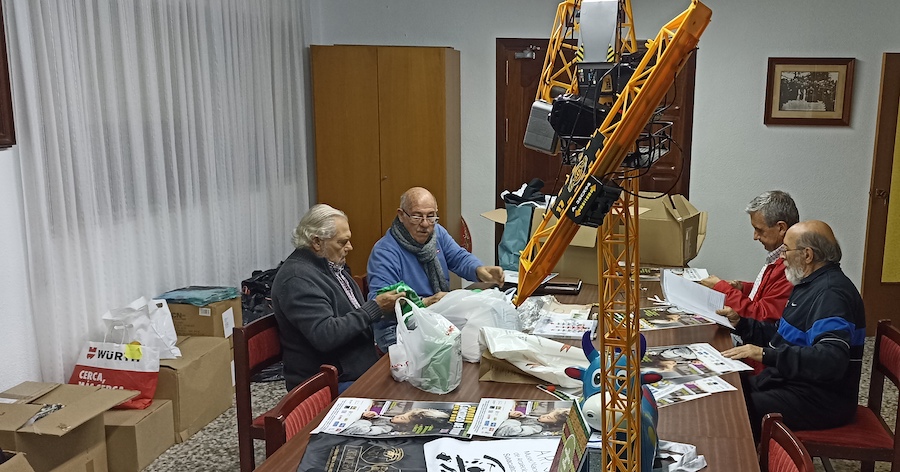 Las fotos muestra a parte de la directiva catalogando el material que se distribuirá el sábado.