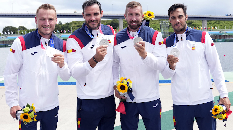 Marcus Cooper Walz, Saúl Craviotto, Carlos Arévalo y Rodrigo Germade con la plata conseguir en Tokio 2020 / Foto: COE