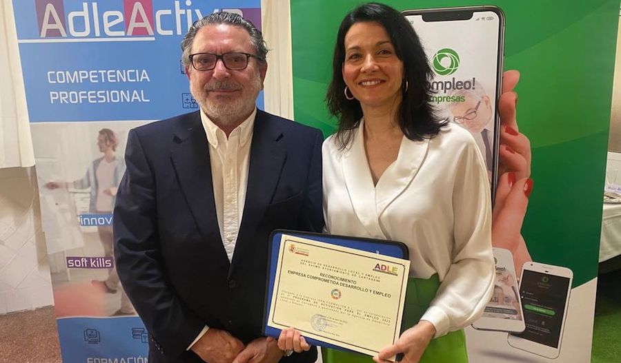Ha sido reconocida por la Agencia de Desarrollo Local y Empleo por su compromiso con el desarrollo y el empleo en el municipio de Cartagena, ya que es de la entidad que ofrece una oportunidad laboral a personas con dificultades para incorporarse al mercado de trabajo. En la imagen, su presidente, Luis Cruz, recibe el certificado de manos de Irene Ruiz, presidenta de la ADLE y concejala de Empleo.