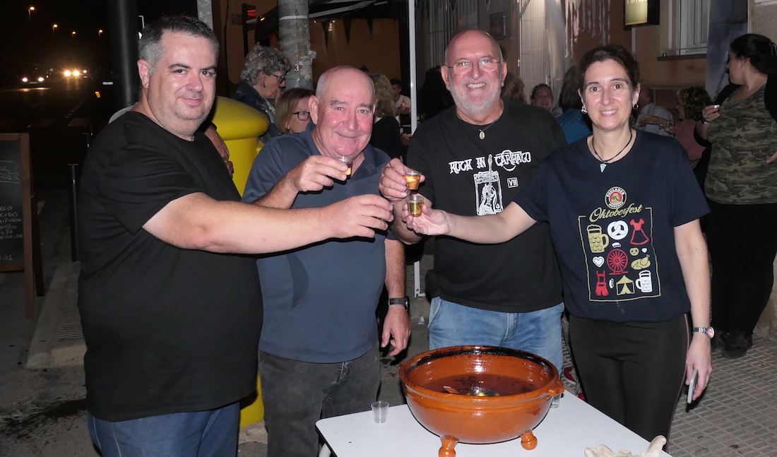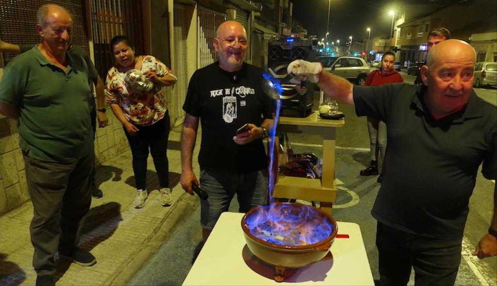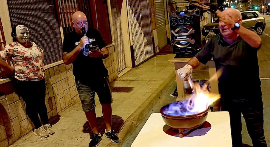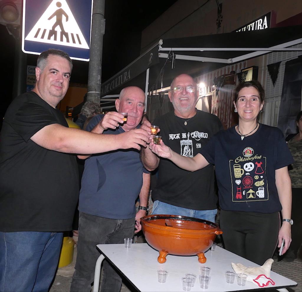 Del 29 al 31 de octubre, los clientes de Tapería-Restaurante-Bar ‘Casa de la Cultura’ de Molinos Marfagones ha ofrecido a sus clientes ‘dedos’, ‘momias’ y otros territóricos manjares gastronómicos, acompañados de buena cerveza al mejor precio. Además, instaló un photo-call en la entrada con dos lápidas de enterramiento. La respuesta de clientes, amigos y vecinos ha sido muy buena, pero faltaba ‘la guinda’, que la puso anoche la elaboración de una queimada (de 6 litros de orujo blanco) a cargo de José Luis al estilo ‘baalhamonero’, siendo José Vicente, su compañero de tropa en las fiestas de Carthagineses y Romanos, quien dio lectura al ‘conxuro’. Gustó, como refleja que todos los presentes repitieran.