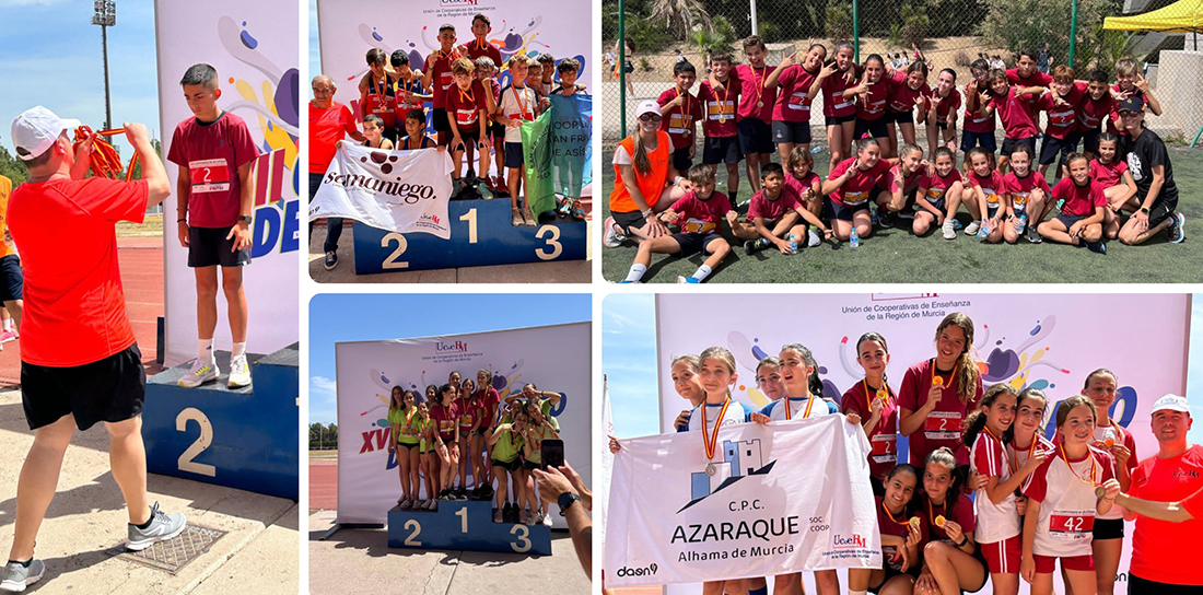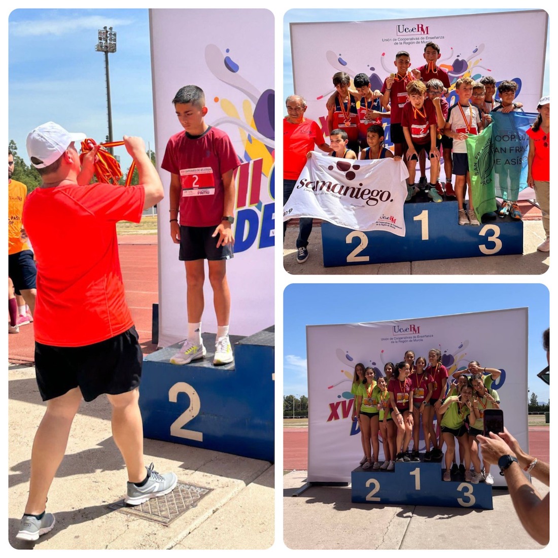 En el centro de enseñanza del Polígono Santa Ana trabajamos por la formación más amplia de nuestros alumnos, incluido el terreno deportivo, donde hemos tenido jornadas tan felices como la cosechada en el tradicional campeonato regional de Ucoerm, que reunió ne la pista murciana de Monte Romero a más de cuarenta cooperativas de enseñanza, con estupendos resultados para nuestros representantes de Primaria y de Secundaria.