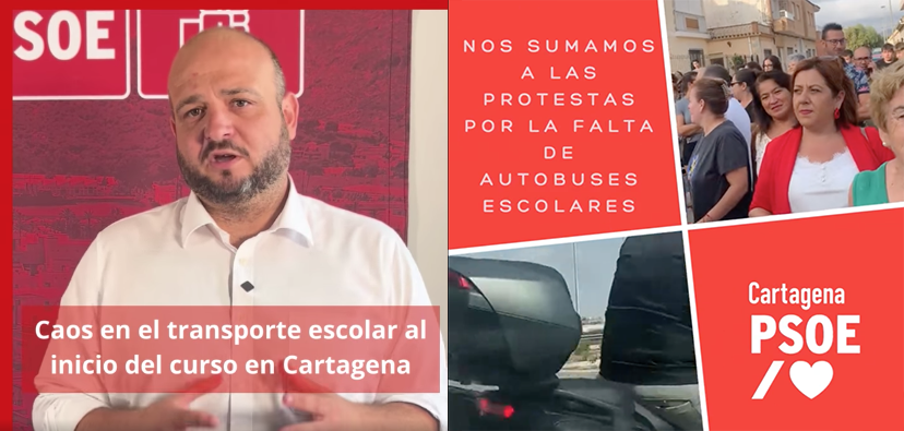 Más de 1500 estudiantes de Cartagena, entre los que se encuentran 125 alumnos de un colegio de Educación especial, se han quedado sin transporte escolar “por la falta de previsión de López Miras, que estaba más pendiente de sus vacaciones y de negociar el nuevo gobierno que de los problemas reales de los cartageneros”, explica Manuel Torres.