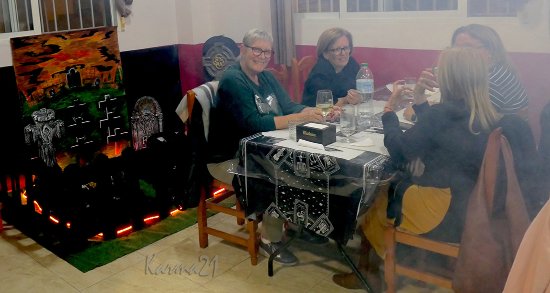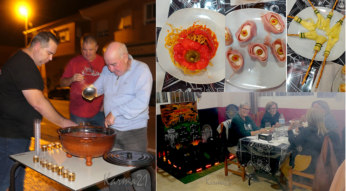 Todo el trabajo llevado a cabo por el equipo liderado por Vicente y Paqui, quienes dirigen Bar 'Casa de la Cultura' de Molinos Marfagones, sirvió para que los clientes disfrutasen de sus tapas y bebidas en un ambiente diferente, propio de la fecha, y de unas 'siniestras' tapas muy originales. Después, la queimada elaborada (mientras se recitaba el 'conxuro gallego') por especialistas de la Tropa de Baal-Hammon de Carthagineses y Romanos fue degustada de forma gratuita por todos los asistentes.