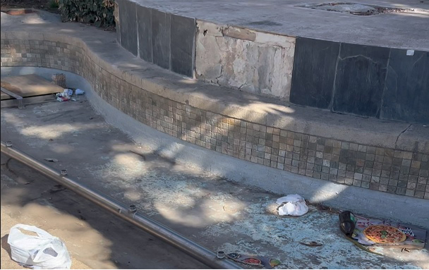El concejal socialista Pedro Contreras exige la reparación urgente del pavimento y de la fuente, así como la adecuación de los jardines de 'El Lago', como se conoce a este espacio de forma popular, y donde el Decumano también está abandonado a su suerte y sin proyecto de recuperación.
