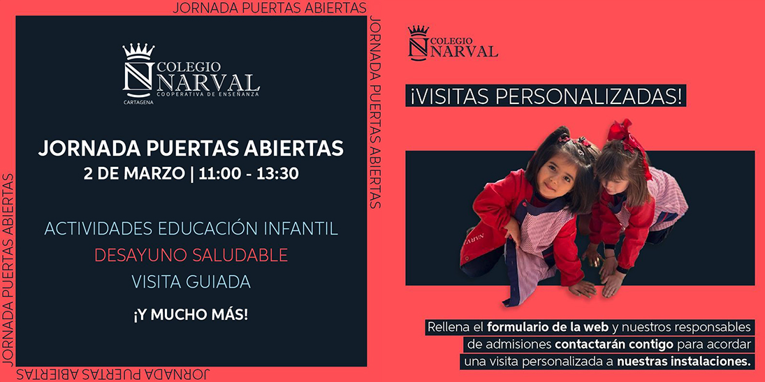 ¡Ya está aquí la jornada de puertas sbiertas de Colegio Narval! ¿Te gustaría conocer nuestro centro desde dentro? Este sábado, 2 de marzo, todos los papis y mamis que deseen están invitados a conocernos. ¡No podéis faltar! 😀