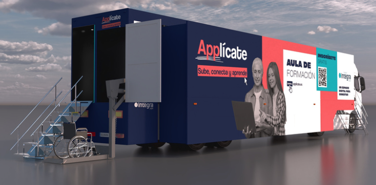 La aula móvil de la campaña de formación itinerante en competencias digitales promovida por la Fundación Integra Digital y el Gobierno de la Región de Murcia estará del 2 al 9 de septiembre en la Alameda de San Antón. Promueve el acceso generalizado a las oportunidades y ventajas de la sociedad de la información.