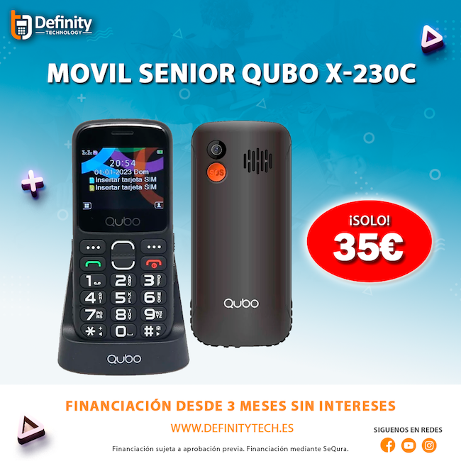 Definity Techonology lanza en esta ocasión, en su promoción semanal, tres modelos de teléfonos móviles muy sencillos e ideales para que los lleven las personas de avanzada edad. Los tres son plegables de formato libro y a los mejores precios. Estamos en la calle Mayor de La Unión y en internet en www.definitytech.es
