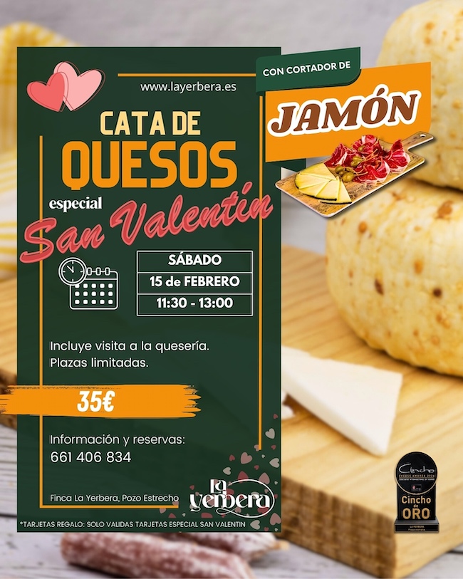 Dicen que 'vino y queso saben a beso'. Qué mejor manera de comprobarlo que celebrar el amor con la mejor compañía y degustando nuestros quesos en las instalaciones de Pozo Estrecho el 15 de febrero. No te pierdas esta oportunidad de visitar la quesería y degustar nuestro queso premiado en los 'Cincho Cheese Awards'. También hay visitas preparadas para los días 8 y 16.