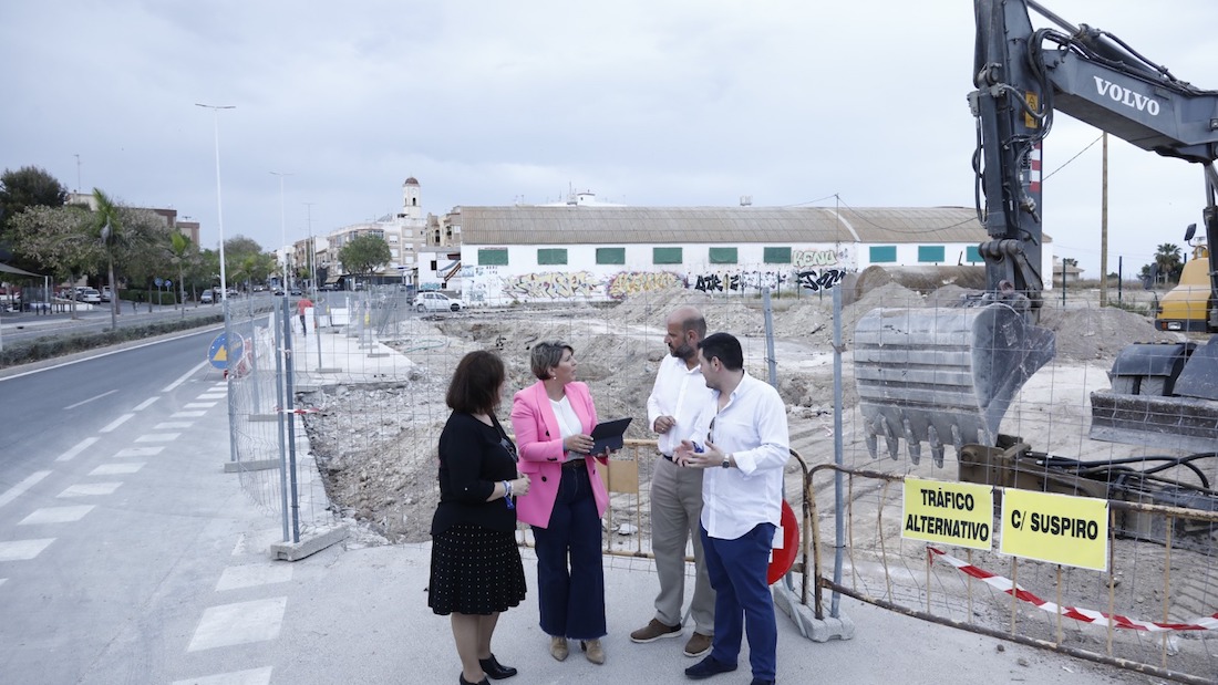 La alcaldesa visita las obras que están en marcha en el barrio, como los dos carriles de entrada una vez quitado el monolito de la antigua gasolinera ("El desdoblamiento de la avenida Floridablanca será un antes y un después para la fluidez del tráfico"), el paso sobreelevado de la rambla de Benipila, la nueva rotonda en la calle Camino del Suspiro o el asfaltado de varias calles, entre otras actuaciones.